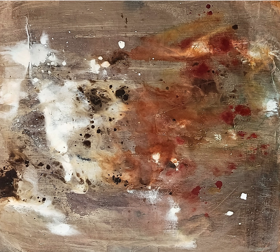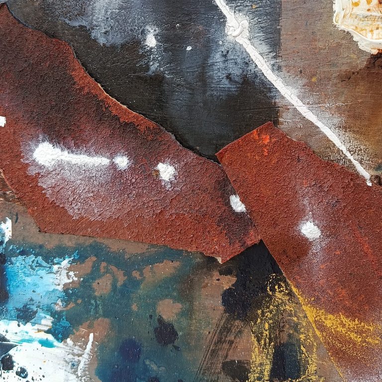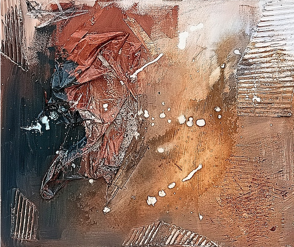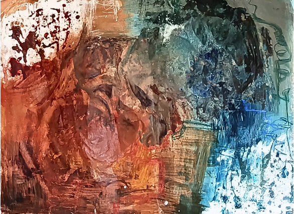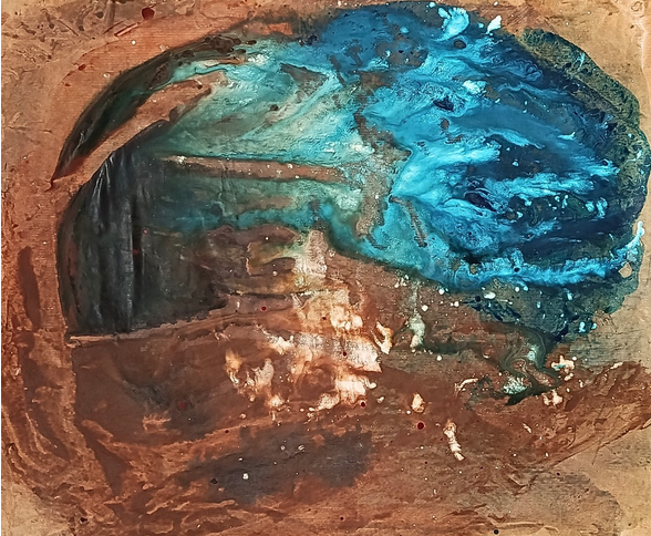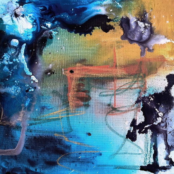 En esta serie de obras establezco un paralelismo entre el fenómeno de la tectónica de placas y los procesos de transformación que han marcado mi vida. Así como las placas terrestres se desplazan, colisionan y se reconfiguran constantemente, mis experiencias personales han generado fricciones, rupturas y nuevos comienzos. Los colores fríos representan una etapa pasada: un territorio aparentemente estable, pero en realidad lleno de tensiones internas que anticipaban el cambio. Al entrar en contacto con los colores cálidos —símbolo del presente y del futuro— se produce un choque visual que evoca esos momentos de crisis y transición, donde lo conocido deja de ser suficiente y emerge una nueva configuración emocional y vital.